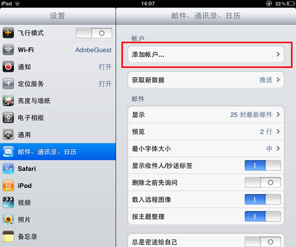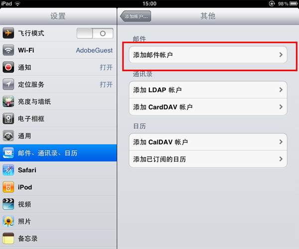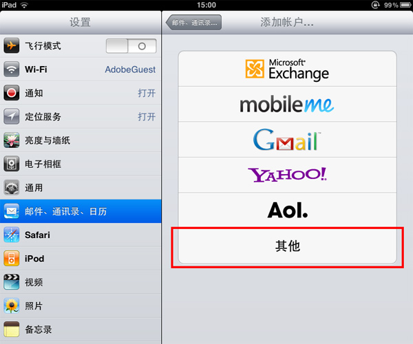 怎樣在iPad/iPhone/iPod touch 中設(shè)置使用企業(yè)郵箱,下面以 iPad 為例: