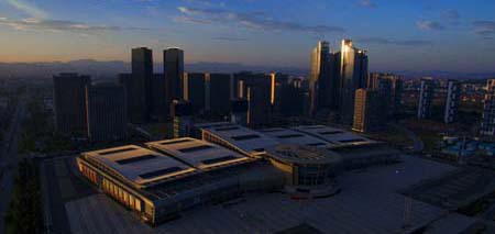 《詩(shī)經(jīng)?大雅?卷阿》:“鳳凰鳴矣,于彼高岡;梧桐生矣,于彼朝陽(yáng)?!庇揽祰?guó)際會(huì)展中心整體建筑形如一只展翅高飛的“金鳳凰”,是浙中地區(qū)功能最完善、配套最齊全、設(shè)施最先進(jìn)的專(zhuān)業(yè)展館之一,也是永康市最大單體建筑??傉嫉孛娣e17.6萬(wàn)平方米,總建筑面積16.2萬(wàn)平方米,廣場(chǎng)設(shè)施面積10萬(wàn)平方米。國(guó)際會(huì)展中心設(shè)有千人多功能會(huì)議室,10大展廳共可提供3500個(gè)標(biāo)準(zhǔn)展位,以先進(jìn)服務(wù)理念和國(guó)際化標(biāo)準(zhǔn)為國(guó)內(nèi)外展覽、會(huì)議,以及體育健身、發(fā)布會(huì)、宴會(huì)等各類(lèi)型活動(dòng)提供專(zhuān)業(yè)的服務(wù)體驗(yàn),被評(píng)為“中國(guó)十佳會(huì)展中心”“最具影響力會(huì)展場(chǎng)館”。