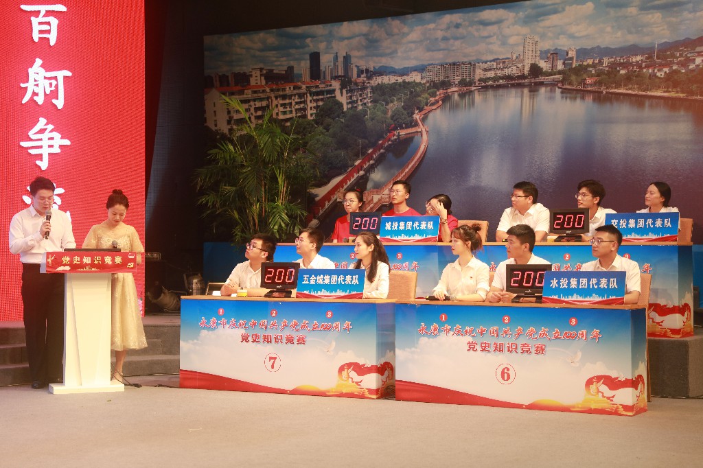 7月27日下午,永康市國(guó)資系統(tǒng)慶祝建黨100周年黨史知識(shí)競(jìng)賽在廣電演播大廳緊張熱烈舉行。共有來自國(guó)投控股、城投集團(tuán)、交投集團(tuán)、水投集團(tuán)、文旅集團(tuán)、金匯集團(tuán)、五金城集團(tuán)、四方集團(tuán)、五金資產(chǎn)公司組成的9支代表隊(duì)27名選手參加了本次比賽。